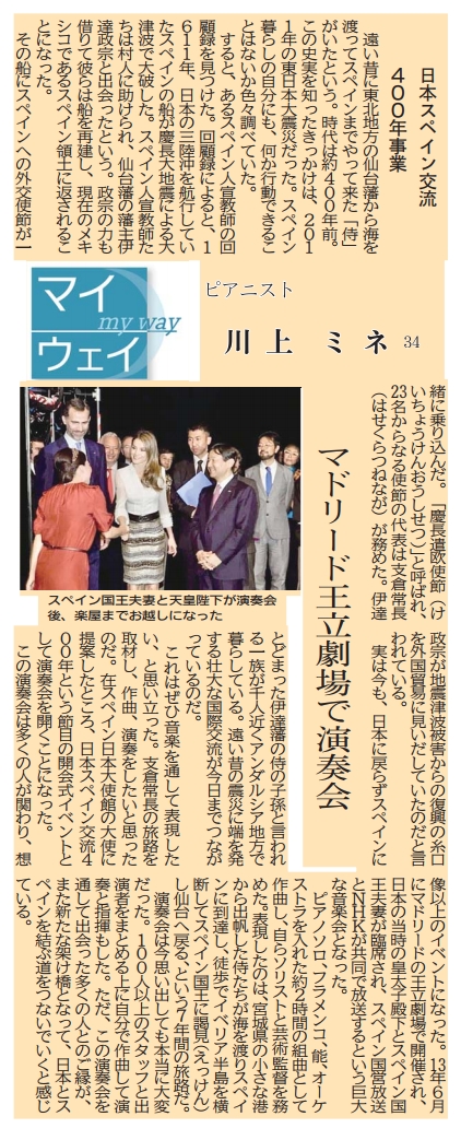 この演奏会は多くの人が関わり、想像以上のイベントになった。13年6月にマドリードの王立劇場で開催され、日本の当時の皇太子殿下とスペイン国王夫妻が臨席され、スペイン国営放送とNHKが共同で放送するという巨大な音楽会となった。
